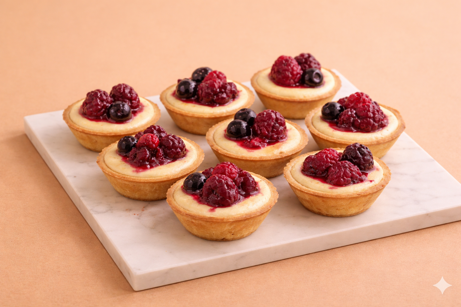Cheesecake a base de queso, ralladura de limón y masa con frutos rojos