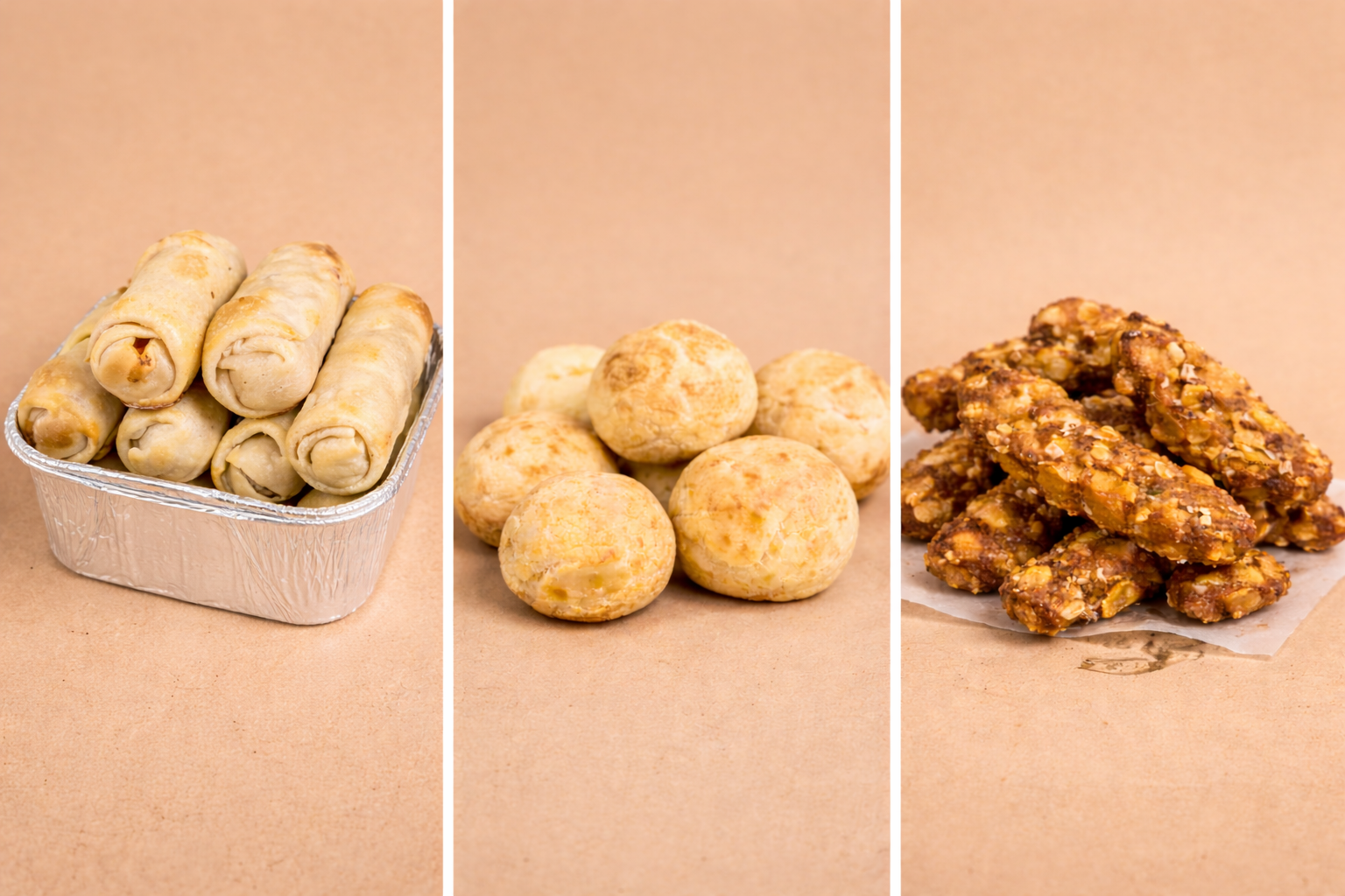 Chicken Fingers, Salchichitas envueltas, Hummus + Bastones de zanahoria y chips de batata (500gr), Nachos con Guacamole (500gr), Chipa
