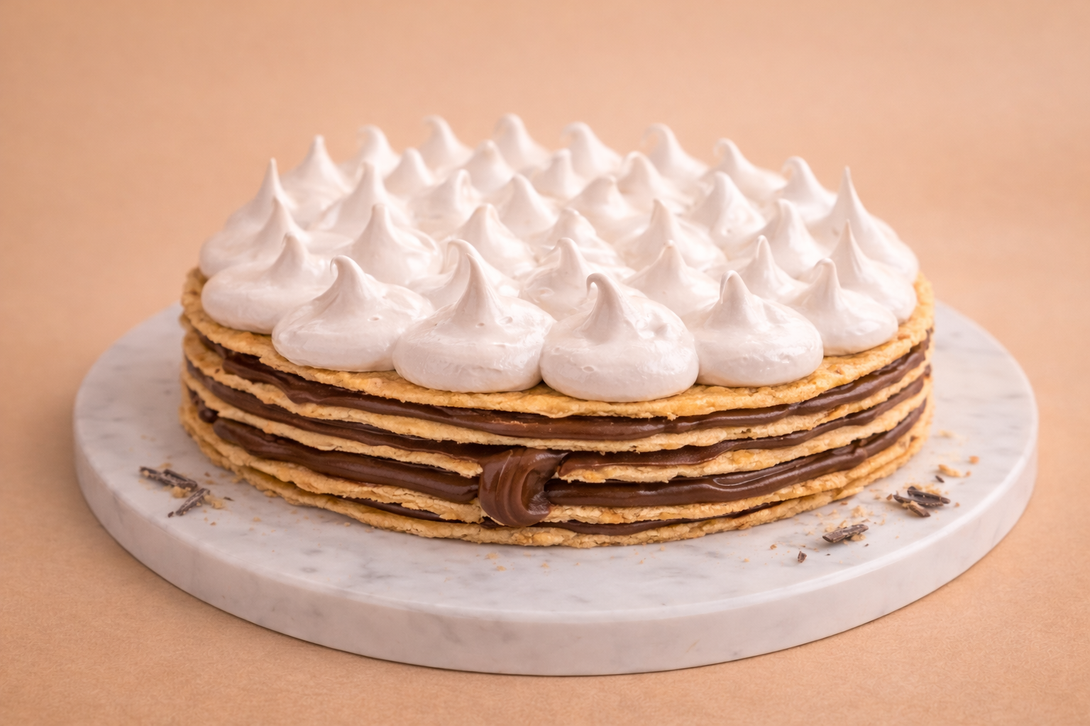 Muchas capas de masa caserita, Dulce de leche repostero y Merengue (opción con capa de chocolate amargo)